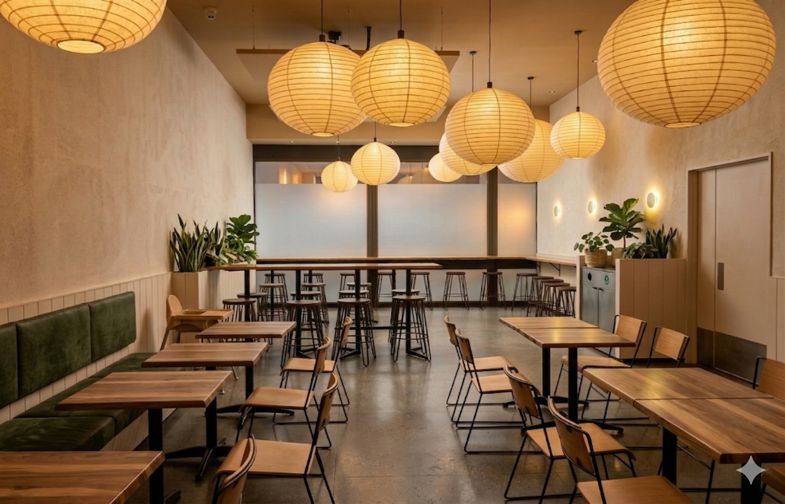 Thoughtful lighting, refined materials and efficient spatial planning come together to create a welcoming, high-function café space that feels fresh, warm and distinctly modern
